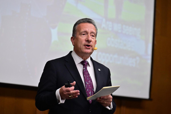Ông nhấn mạnh rằng kỳ vọng của sinh viên và nhà nghiên cứu đang thay đổi, đồng thời lưu ý nhu cầu ngày càng tăng của Thế hệ Z về những trải nghiệm giáo dục có mục đích và dựa trên tinh thần công dân toàn cầu.