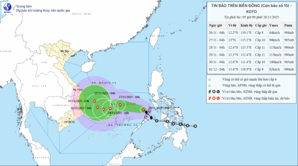 Bão Koto đã đi vào vùng biển phía Đông của khu vực giữa Biển Đông, trở thành cơn bão số 15 trong năm 2025. Dự báo, bão di chuyển rất phức tạp do chịu tác động của nhiều yếu tố.