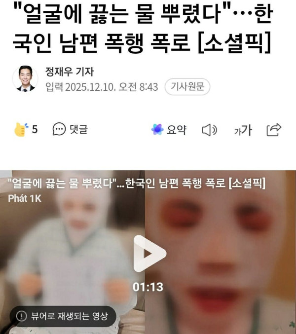 CHỒNG HÀN B,ẠO H,ÀNH TẠT NƯỚC SÔI BỎNG HẾT MẶT NGƯỜI VỢ NGOẠI QUỐC