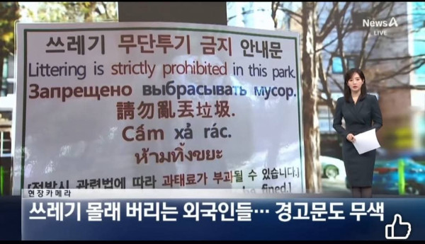Thời sự Hàn đã ghi lại hình ảnh những người vô trách nhiệm này coi thường hành động xả rác thải bừa bãi của những người ngoại quốc bằng máy quay tại hiện trường.