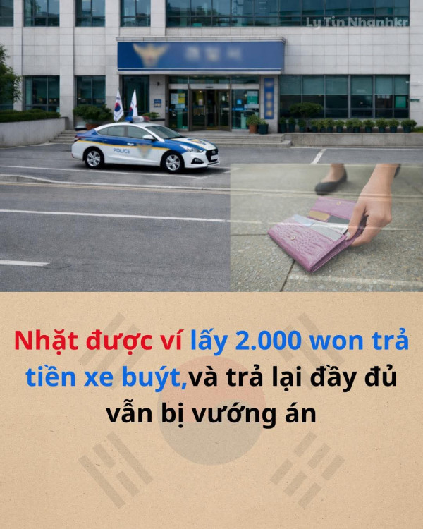 Một lao động nhặt ví đem trả nhưng lỡ lấy 2.000 won “tiền xe”, vẫn bị xử phạt vì chiếm đoạt tài sản thất lạc.