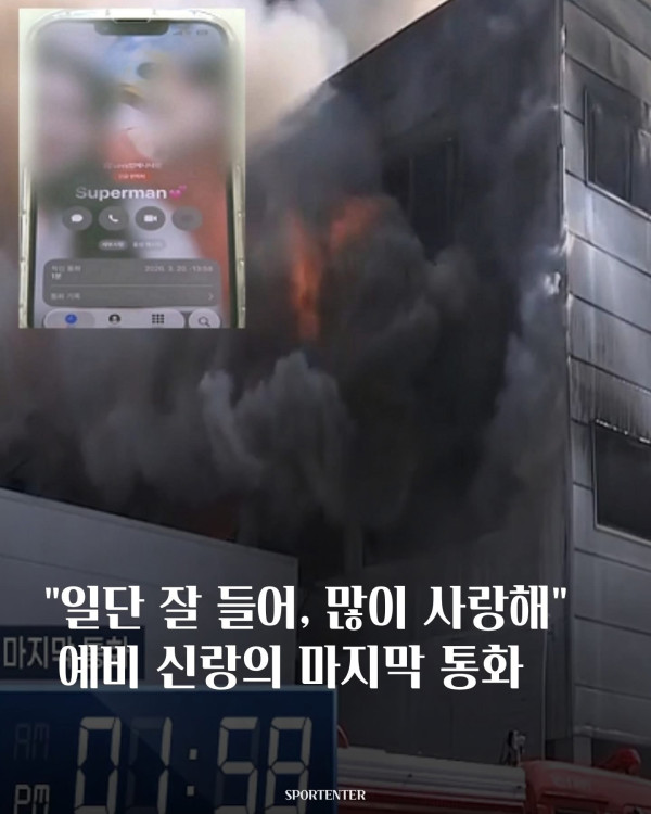 • Theo bản tin của TV Chosun ngày 22, ngay sau khi đám cháy bùng phát, nhà máy nhanh chóng bị bao trùm bởi khói đen dày đặc. Trong tình huống đó, nhân viên họ Jeong đã gọi điện cho vị hôn thê và nói rằng anh có lẽ không thể thoát ra ngoài.