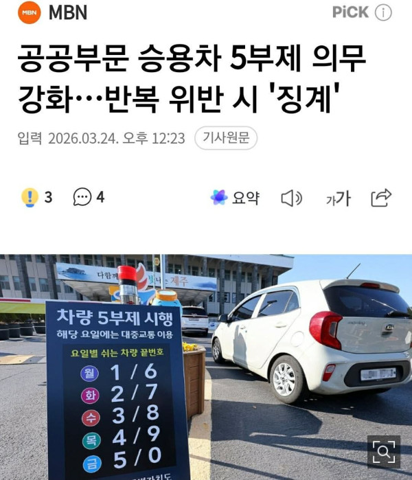Từ 25/3 chế độ hạn chế sử dụng xe cá nhân ( xe xăng dầu ga) theo chế độ 5 ngày (5부제) nhằm tiết kiệm năng lượng sẽ được bắt buộc áp dụng tại các cơ quan nhà nước, công trình trụ sở công cộng...
