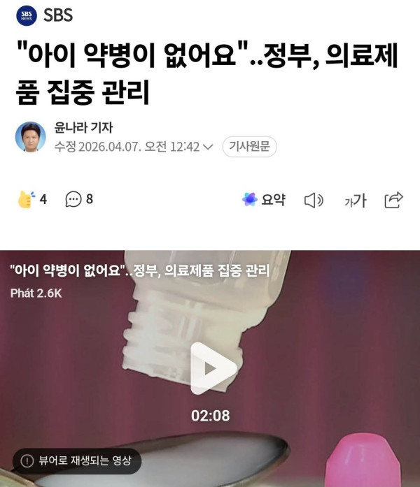 [Lee Cheong-hwi / Dược sĩ tại Changwon: Vì nguồn cung thuốc dạng lỏng khan hiếm, chúng tôi khuyên bệnh nhân sử dụng tiết kiệm và chỉ cấp phát một chai một lần.]