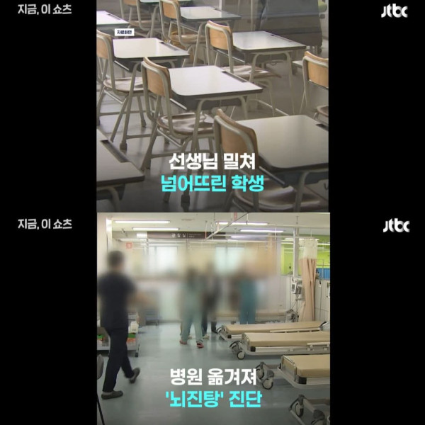 Tại một trường cấp 2 ở Gwangju, việc một học sinh xô giáo viên khiến giáo viên bị chấn động n:ão.