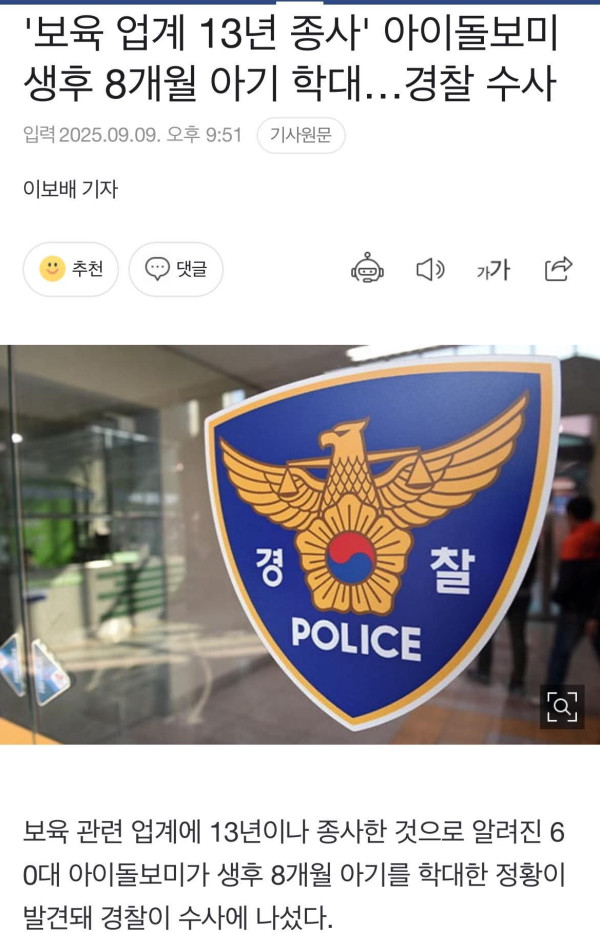 Một bảo mẫu 60 tuổi với 13 năm kinh nghiệm trong ngành chăm sóc trẻ em đang bị cảnh sát Daegu điều tra do nghi ngờ bạ0 hà.nh bé 8 tháng tuổi.