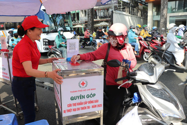 Tại trụ sở Hội Chữ thập đỏ TP HCM (201 Nguyễn Thị Minh Khai, phường Cầu Ông Lãnh), hoạt động tiếp nhận hàng cứu trợ bắt đầu từ ngày 3-10 và dự kiến kéo dài đến hết ngày 31-10-2025.