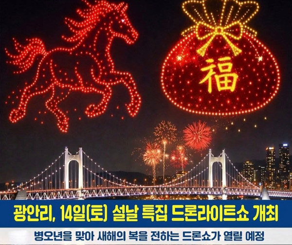 14/2/2026 tại bãi biển 광안리 có biểu diễn Drone chúc mừng năm mới đặc biệt