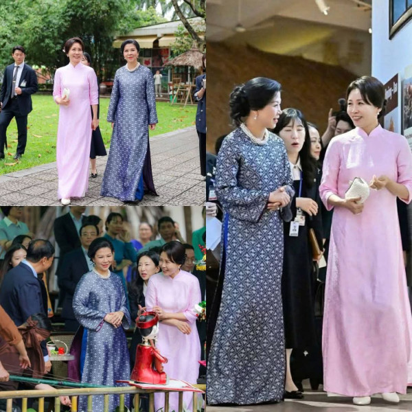 Đệ nhất phu nhân Kim Hye-kyung diện áo dài Việt Nam đ:ẹp q:uá Hai phu nhân cùng đ:ẹp