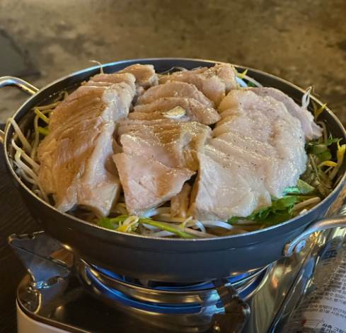 • Thịt luộc (suyuk): khi gọi theo số người, khách sẽ được tặng kèm một nồi nabe. Thịt có thể ăn ngay, còn nước dùng nên chờ sôi rồi thưởng thức. Nước dùng cay nhẹ, ăn kèm rượu soju rất hợp.