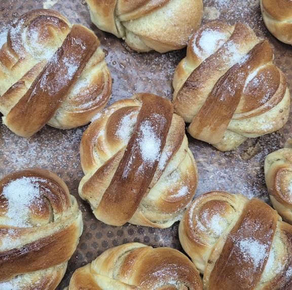 Tại Les Mains Dorées, bánh mì bạch đậu khấu đã lặng lẽ trở thành món bán chạy nhất. Tiệm bánh này mang đến một phiên bản "tái hiện" làm từ bột bánh sừng bò — giòn tan bên ngoài, mềm mại bên trong. Sự kết hợp giữa hương thơm nồng nàn của bạch đậu khấu và đường ngọc trai giòn tan khiến phiên bản này trở nên đặc biệt khó cưỡng.