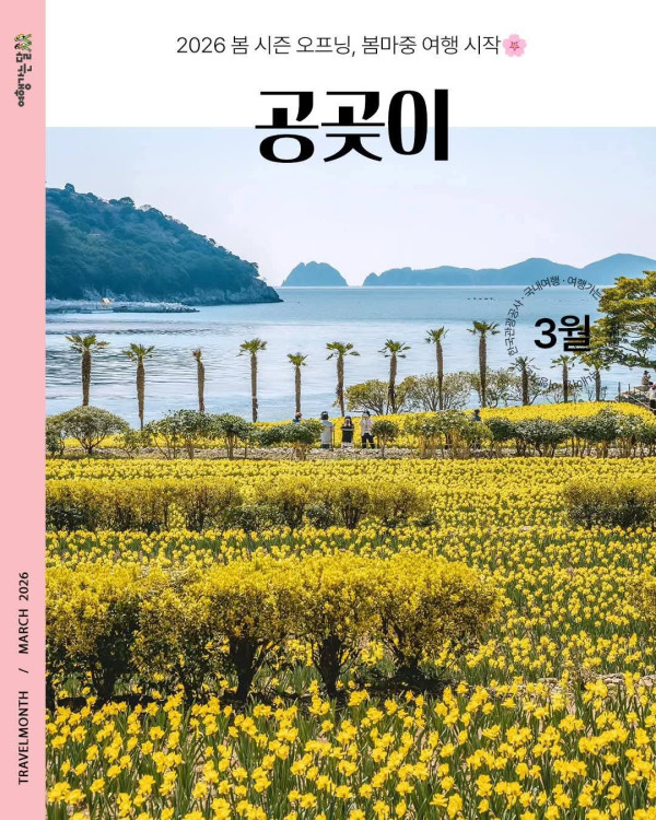Sự hòa quyện hoàn hảo giữa hoa thủy tiên vàng và biển xanh tại 거제도 .