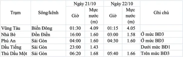 Đây là kỳ triều cường cao, cần đề phòng mưa lớn kết hợp với triều cao gây ngập úng ở các vùng trũng thấp, ven sông ảnh hưởng đến giao thông, các hoạt động kinh tế - xã hội khu vực TP HCM.