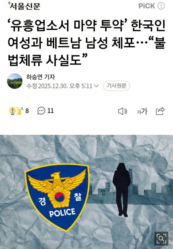 Vào khoảng 7 giờ 16 phút sáng ngày 29/12, tại đồn cảnh sát Wonmi, Bucheon, tỉnh Gyeonggi, hai người gồm một người đàn ông Việt Nam khoảng 30 tuổi (“A”) và một phụ nữ Hàn Quốc khoảng 30 tuổi (“B”), với cáo buộc tàng trữ chất g,ây ngh,iện theo Luật Kiểm soát M,a t,úy.