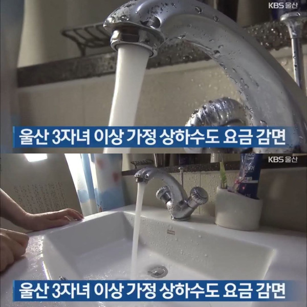 Thành phố Ulsan sẽ hỗ trợ g,iảm tiền nước (bao gồm nước sạch và nước thải) nhằm g,iảm bớt gánh nặng sinh hoạt cho các gia đình đông con và các hộ thuộc diện nhận trợ cấp sinh hoạt cơ bản.