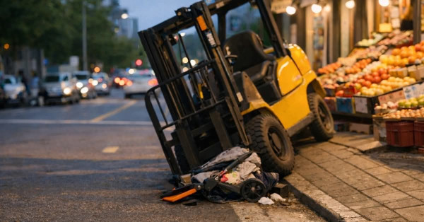 Cơ quan chức năng cho biết chiếc xe nâng thuộc sở hữu của một người đàn ông ngoài 40 tuổi, chủ cửa hàng trái cây gần đó.!