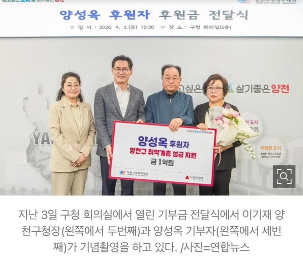 Chủ tịch quận Yangcheon cho biết: “Chúng tôi vô cùng kính trọng và biết ơn quyết định của cụ Yang khi sẵn sàng trao đi số tài sản quý giá mà ông đã vất vả tích góp cả đời để giúp đỡ những người xung quanh. Chúng tôi cam kết sẽ sử dụng khoản tiền này một cách minh bạch và có trách nhiệm.”