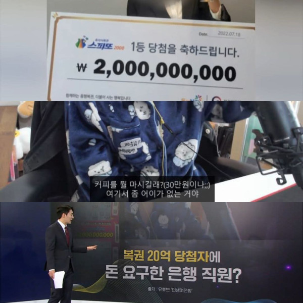 커피값 30만 원만" T:rúng loto 20 ớc... nhân viên ngân hàng "vượt quá giới hạn" xin 300K won t:iền cà phê.