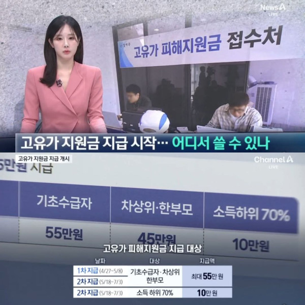 "고유가 피해지원금" - T:iền hỗ trợ ảnh hưởng do g:iá xăng dầu tăng: từ 100~600K won/người, tùy theo khu vực sinh sống, người thuộc diện hưởng trợ cấp sinh hoạt.