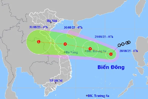 Đến 1h ngày 30/8, tâm bão trên vùng Quảng Trị đến Đà Nẵng, cách khu vực phía Bắc Quảng Trị (Quảng Bình cũ) khoảng 360km về phía đông đông nam với cường độ cấp 8, giật cấp 10.