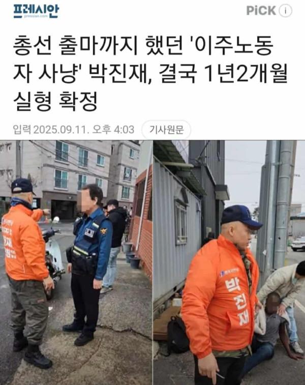 박진재 người đứng đầu liên minh bảo vệ công dân Quốc gia, đã bị kết án tù vì tội bắt giữ và hành hung một người nhập cư không có giấy tờ. 박진재, một thành viên của đảng thống nhất tự do cực hữu do mục sư Jeon Kwang-Hoon lãnh đạo, đã tham gia tranh cử trong cuộc tổng tuyển cử tại Daegu Buk-gu.