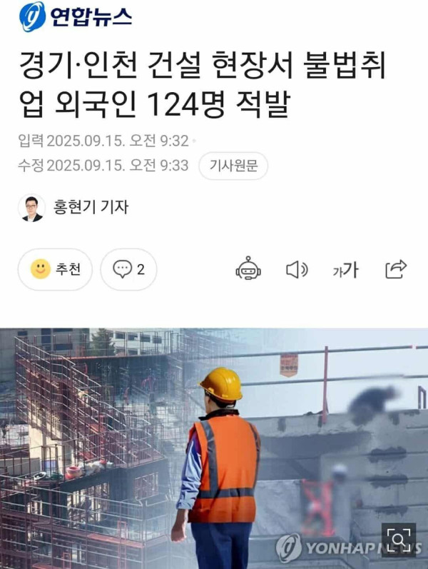 BẮT GIỮ 124 NGƯỜI NGOẠI QUỐC LÀM VIỆC BHP TẠI  CÔNG TRƯỜNG XÂY DỰNG Ở 경기 VÀ 인천
