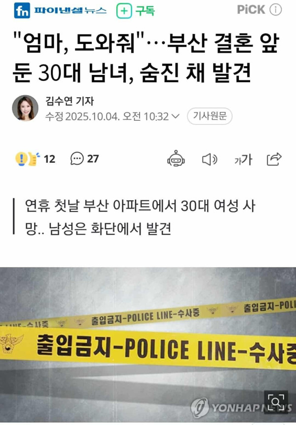 Theo Đồn Cảnh sát Saha Busan, vào ngày 4 tháng 10, một phụ nữ ngoài 30 tuổi A, được phát hiện ngã gục trong phòng ngủ chính của một căn hộ ở Busan vào khoảng 19:42 tối ngày hôm 3/10.