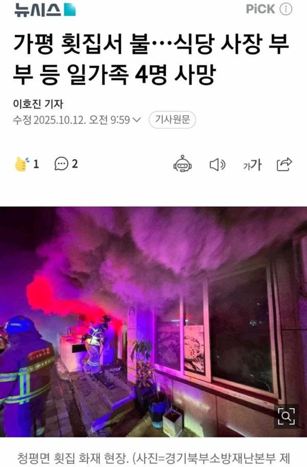 CHÁY LỚN TẠI 가평군 청평면 CHỦ NHÀ HÀNG CÙNG GIA ĐÌNH 4 NGƯỜI THI,ỆT MẠ,NG