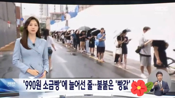 Xếp hàng dài chờ từ sớm để được mua bánh mì với g_iá chỉ 990 won/ cái... "소금빵"